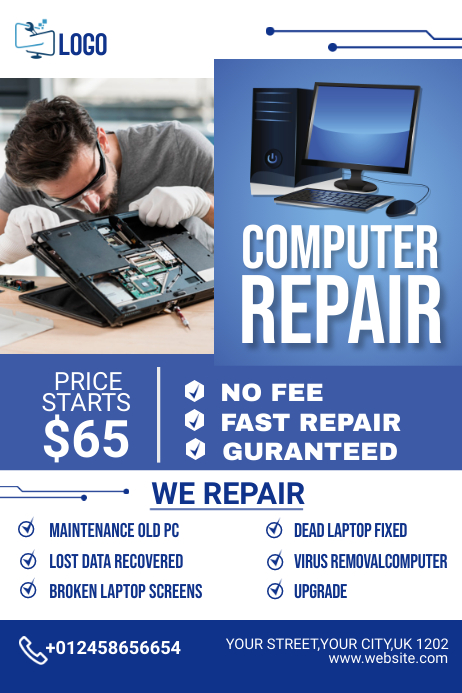 Expert Virus Removal Computer Repair Tablet NewUsed Computers. Remember that our ready-made templates are free for commercial use. Create great-looking computer repair advertisements with our customizable graphic designs.